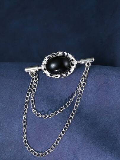 1pc Unisex Couple Fringe & Chain & Oval Classic All-Match Brooch - Silver - View 1