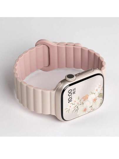 1pc Unisex Fashion Casual Magnetic Silicone Watch Band, Adjustable Waterproof Strap Compatible With Apple Watch 38/40/41/42/44/45/46/49mm, Suitable For Apple Watch Series Ultra/SE/10/9/8/7/6/5/4/3/2/1, Smart Watch Accessory - Pink With Starlight Color (no Watch) - View 1