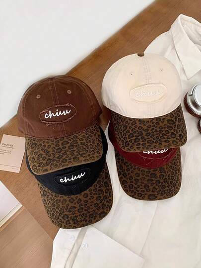 1pc Unisex Fashion Leopard Print & Solid Color Baseball Cap, Casual Wide Brim Deep Crown Large Head Circumference Sun Hat - Multicolor - View 1
