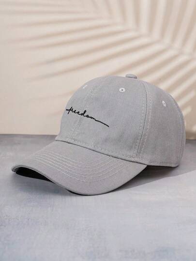 1pc Unisex Y2K Embroidered 'Freedom' Baseball Cap Sun Hat, Adjustable Outdoor Leisure Cap For Spring, Autumn, Travel, Beach, And Vacation - Grey - View 1