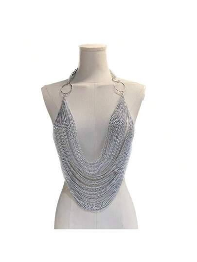 1pc Unisex Punk Tassel Chain Body Chain, Sexy Suitable For Parties, Christmas, Music Festivals, Runway Shows - Silver - View 1