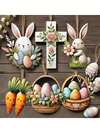 12pcs/Set Cute Easter Bunny & Cross Wooden Hanging Ornaments, Decorated With Floral Patterns, Easter Eggs, Carrots And Rabbit Designs, Ideal For Spring Theme Parties, Rabbit Theme Party Favors, Home Decor, Classroom And Garden Decorations, As Well As Gifts For Spring, Easter And Other Celebrations