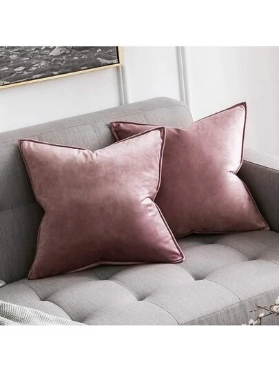 1pc Velvet Piping Decor Pillow Cover Square Cushion Case For Sofa Bedroom Car 18x 18 Inch 45x 45cm - Dusty Pink - View 1
