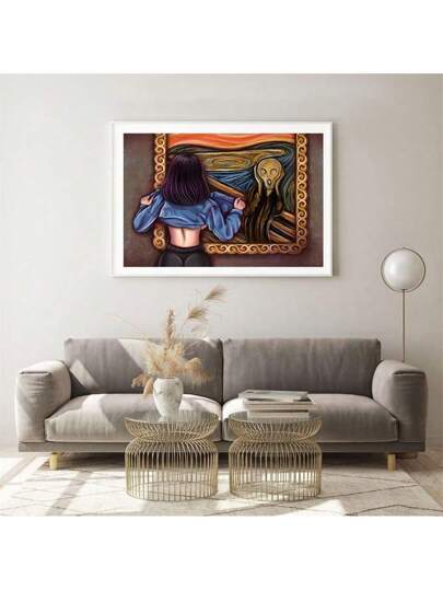 1pc Vintage Canvas Wall Art Famous Art The Scream Funny Woman Aesthetic Posters Unique Scream Prints Vintage Orange Gallery Wall Art Decor Bedroom Living Room.Frameless - Multicolor - View 14