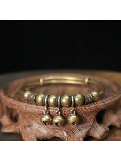 1pc Vintage Copper Exquisite Bell Bracelet Intricately Crafted With Timeless Design Adjustable Push-Pull Mechanism Accessories Perfect Retro Gift For Women Holiday Gift Birthday Gift - Bronze - View 1