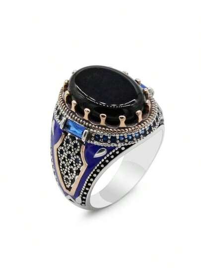 1pc Vintage Men's Classic Elegant Black Zirconia Ring, Wedding Engagement Party Jewelry Gift - Black - View 1