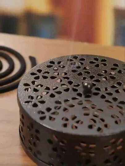 1pc Vintage Metal Mosquito Coil Holder With Handle - Portable Iron Incense Burner, Decorative Cut-Out Patterns, No Batteries Needed For Home & Outdoor Use, Mosquito Repellent Device, Durable Construction - Multicolor - View 1