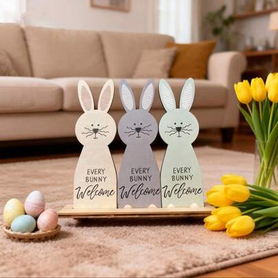 1pc Vintage Multi-Holiday Welcome Sign & Tabletop Centerpiece - Tiered Plaque, Suitable For Easter, Valentine's Day, Thanksgiving - Wooden Desktop/Wall Decor With Themed Greeting Sign, 2D Flat Design - Multicolor - View 3