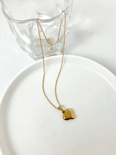 1pc Vintage Style Heart Shaped Pendant Necklace, Perfect For Women's Date, Party, Daily Commute Outfits - Yellow Gold - View 1