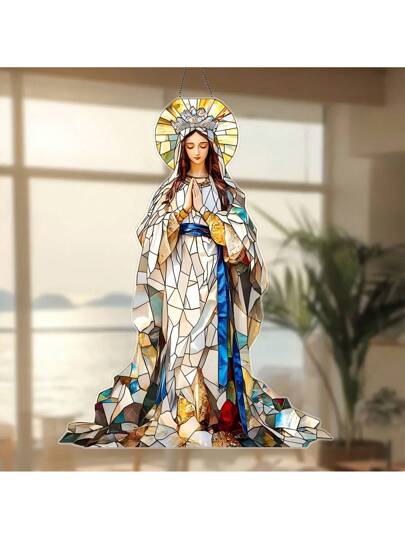 1pc Virgin Mary Suncatcher, 2D Flat Acrylic Stained Glass Style Hanging Decoration, Plastic Material, Ideal For Birthday Occasions, Home & Garden Window Decor, Perfect Holiday Gift, Home Decoration|Religious Iconography|Light-Reflective Piece - Multicolor - View 1