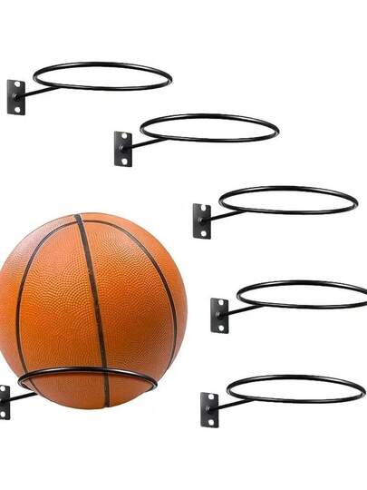 1pc Wall-Mounted Basketball Hoop, Iron Art, Basketball And Football Rack, Multi-Function Ball Storage Rack, Storage Hanging Rack, Display Rack, For Home Room Living Room Office, Valentine's Day New Year Gift Decoration Fashionable Home Storage Rack, Convenient Home Organizer, Suitable For Home, Room, Living Room, Bedroom, Office, Gymnasium And Mall, No Power Required - Multicolor - View 5