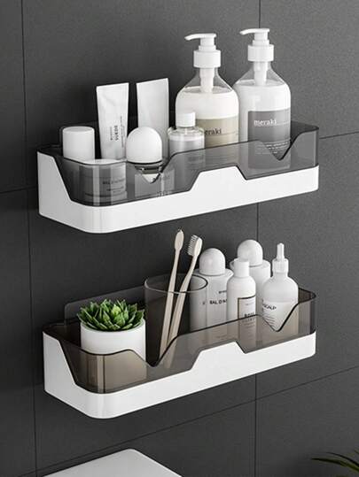 1pc Wall-Mounted Plastic Storage Rack, Minimalist Black And White Multifunctional Bathroom Storage Rack - Single Size - View 1