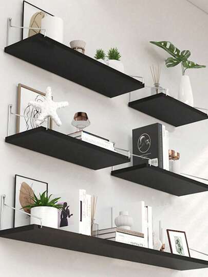 1pc Wall Shelf Rack Hanging Storage Unit No-Drill, Wooden Wall Mount Display Shelves, Bedroom Kitchen Organizer Room Decor - Black - View 1