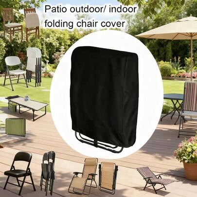 1pc Waterproof And Dustproof 210D Oxford Fabric Folding Chair Cover, Courtyard Indoor Folding Chair Dust-Proof Storage Cover,Black,Beach,Summer,Vacation,Holiday,Travel Essential,Going Out Tops,Household Items - Black - View 1