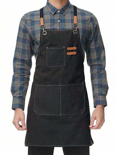 1pc Waterproof Canvas Apron For Gardening And Hairdressing In Brown Color - Multicolor - View 1