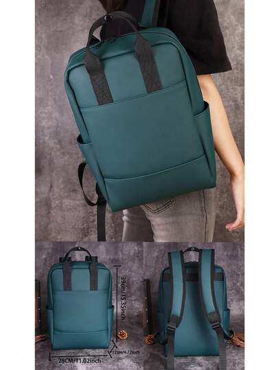 1pc Waterproof Handheld Laptop Backpack, Blue & White Collar Office Bag, Middle/Elementary School Student Campus Stationery Storage Bag, Unisex Casual Backpack. Adopts Minimalist Multi-Purpose Design, Adjustable Straps, Waterproof Zipper Closure. Suitable For Students, Office Workers, Outdoor Travel Or Camping. Large Capacity, Practical Gift Choice For Halloween, Christmas, Birthday And Other Occasions. - Dark Green - View 5
