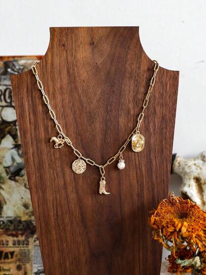 1pc Western Cowgirl Boots, Cowboy Hat & Geometric Link Chain Necklace - Multicolor - View 1