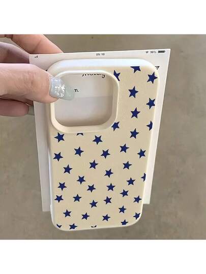 1pc White Leather Texture Blue Star Pattern Pentagon Smartphone Case Compatible With Iphone 16 Pro Max, 15/14 Plus, 13, 12, 11 And Series - Multicolor - View 1
