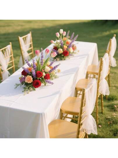 1pc White Tablecloth, Suitable For Dining, Friends Gathering, Wedding Decoration, High-End Restaurants, Hotels, Conference Rooms, Cafes, Outdoor Events, Durable, Comfortable And Elegant - White - View 1