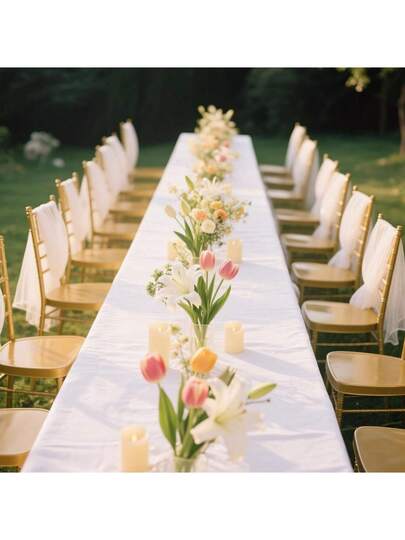 1pc White Versatile Tablecloth, Suitable For Dining, Wedding, Friends Gathering, Family Party, Creates Fresh Ambiance For Indoor And Outdoor Use - White - View 1
