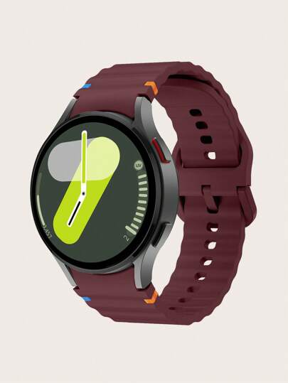 1pc Wine Red Silicone Contrast Stitching Wavy Design Smart Watch Band, Compatible With Samsung Galaxy Watch 4/5/6/7 40mm/42mm/43mm/44mm/45mm/46mm/47mm/5 Pro - Burgundy - View 1