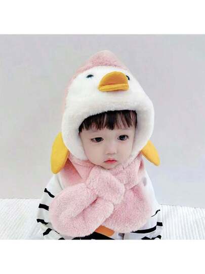 1pc Winter Children's Hat Scarf Set Cute Cartoon Duck Plush Hat And Scarf Combination For Boys And Girls' Warmth - Pink - View 1
