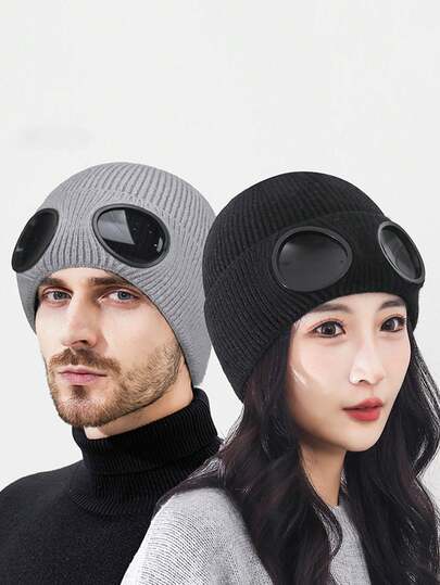 1pc Winter Outdoor Warm Thermal Lined Knit Hat, Unisex Pilot Windproof Ski Mask Beanie - Multicolor - View 1