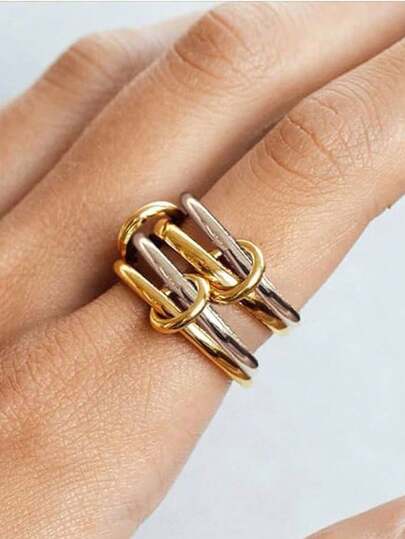1pc Women's Fashion Stainless Steel Multi-Loop Cubic Zirconia Ring With Layered Design, Suitable For Daily Wear And Party - New Somen - View 9