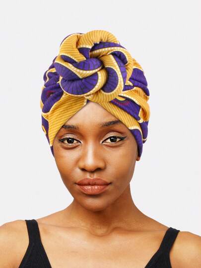 1pc Women's Patterned 3D Braided Arabic Headscarf, Versatile Fashion Head Wrap - Yellow Purple Round - View 1