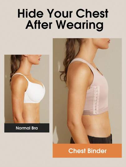 1pc Women Chest Binder Microshaping Bra, Flattening Large Bust, Invisible Side Buckle Sports Vest Chest Wrap Shaping Top - Dusty Pink - View 7