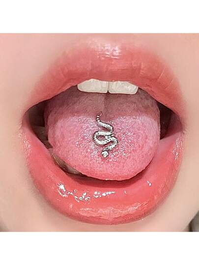 1pc Women Men Stainless Steel Hip Hop Metal Style Sexy Snake Tongue Studs Acrylic Transparent Tongue Earrings Flat Round Non-Sense Comfortable Tongue Earrings Suitable For Gifting Friends And Daily Wear - Silver - View 1