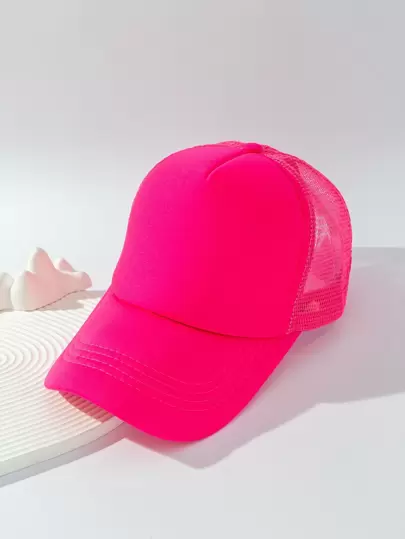 1pc Women Plain Net Casual Lightweight Baseball Cap, Adjustable, Suitable For Everyday Wear - Hot Pink - View 1