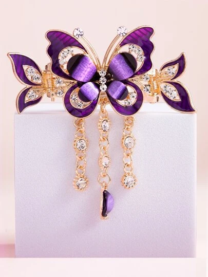 1pc Women Rhinestone & Butterfly Decor Fashion Alligator Hair Clip For Decoration Elegant Hair Claws Claw Clips Hair Clips Hair Jaw Clip Hair Clamps Hair Clutch Hair Catcher Clip, School Stuff, College Fall Winter Hair Accessories For Women For Vacation Outfits Woman - Purple - View 1
