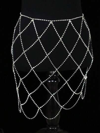 1pc Women Rhinestone Decor Glamorous Chain Belt For Daily Life - Silver - View 1