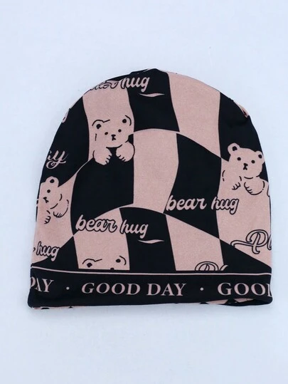 1pc Women's Fashionable Good Day Knitted Hat, Spring/Autumn Lightweight Travel Windproof Warm Cap, Dual Purpose One Size Fits Most - Pink - View 1