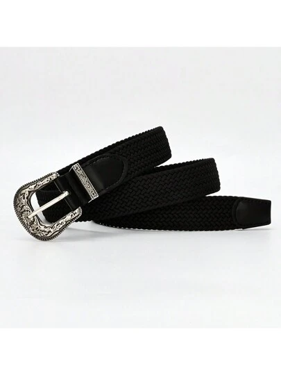 1pc Women's Fashionable & Versatile Square Buckle Elastic Braided Belt For Daily Wear - Multicolor - View 1