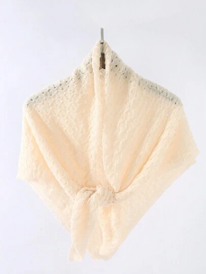 1pc Women's Solid Color Knit Hollow Out 90 Square Scarf, Solid Color Casual Headscarf, Fashion Shawl Suitable For Daily Use - Apricot - View 1