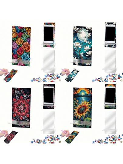 1pc Women's Acrylic Diamond Painting Kit - 5D Crystal Painting By Numbers, Jasmine Flower, Sunflower, Mandala, Rose Theme Design, Multifunctional Phone Holder And Mirror Stand, Creative DIY Craft Gift Set - Multicolor - View 1