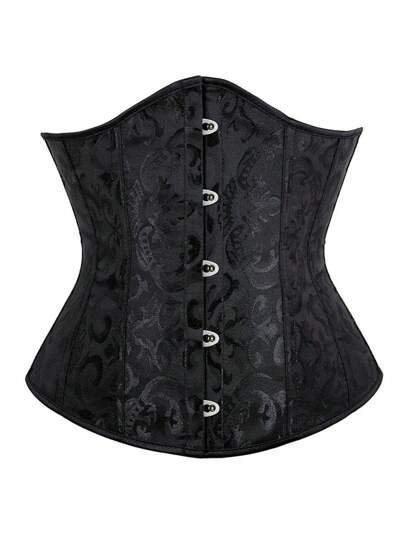 1pc Women's Black Shapewear Waist Belt With Jacquard Texture, Tummy Control Black Corsetaccessories For Ladies For Dress Western Cowboy Cowgirl Country Wear Vintage Black Belt - Black - View 1