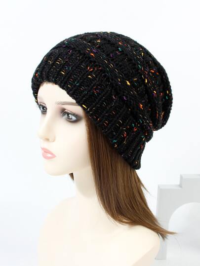 1pc Women's Black Speckled Thread Colorful Winter Warm Knitted Slouchy Beanie Hat For Daily Casual Wear And Outdoor Activities, Autumn/winter - Multicolor - View 1