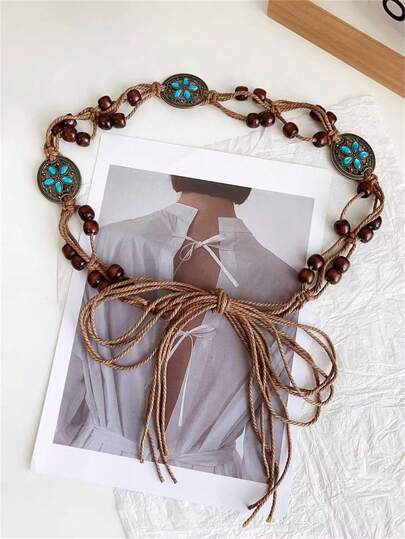 1pc Women's Braided Belt, New Retro Style Waist Rope, Decorative Belt For Dress, Suitable For Daily Wear Halloween Summer, School Fall, Autumn, Halloween - Khaki - View 1
