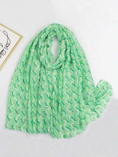 1pc Women's Lightweight Foil Geometric & Leopard Print Pattern Scarf, Summer Shawl - Multicolor - View 1
