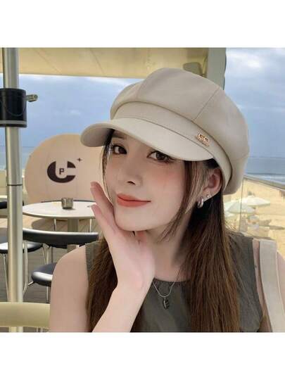 1pc Women's Octagonal Hat, New Spring/Autumn/Winter Outdoor Casual UV Protection Cap, Versatile Brimmed Hat Suitable For Everyday Use - A - View 1