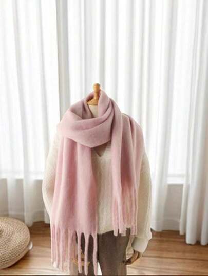 1pc Women's Retro European & American Classic Solid Color Faux Cashmere Thick Warm Soft Comfortable Solid Color Winter Scarf Shawl Wrap, Unisex Long Elegant Casual Student - A - View 12