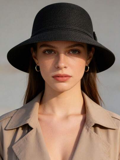 1pc Women's Solid Color Bowknot Straw Hat, Woven Sun Hat For Outdoor Use, Suitable For Spring & Summer Daily Wear And Travel - A - View 8