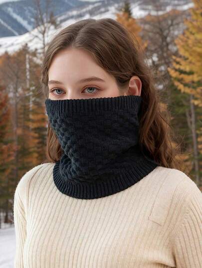 1pc Women's Solid Color Warm Knitted Fleece Neck Gaiter, Multifunctional For Outdoor Skiing, Cycling, Autumn/Winter For Dress - Solid Color - View 25