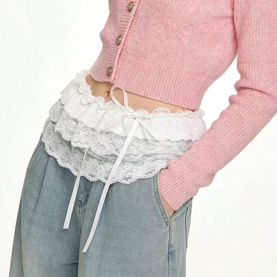 1pc Women's Sweet Lace Tie Waist A-Line Skirt, Spring/Summer - White - View 6