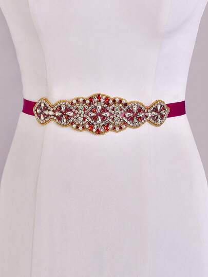 1pc Women's Versatile Red Crystal Waist Belt, Bridal Waist Accessory Suitable For Prom, Party, Evening Gown, Wedding Theme, Halloween - Red Ribbon - View 1