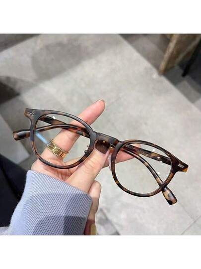 1pc Women's Vintage Square Leopard Print Frame Eyeglasses, Small Frame Fashion Glasses For Daily Use, Including Glasses Case - Coffee Brown - View 1