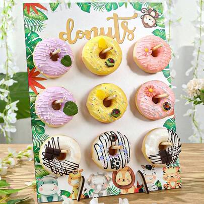 1pc Wooden Donut Forest Animal Theme Party Desktop Decor, Children's Birthday 1st Party Wall Display Rack, Pink Girl Cute Wooden Display Rack, Reusable Vintage Donut Display Rack, Wedding Birthday Home Party Holiday Desktop Decor, Donut Party Supplies (Green Forest Animal & Pink) - Multicolor - View 11
